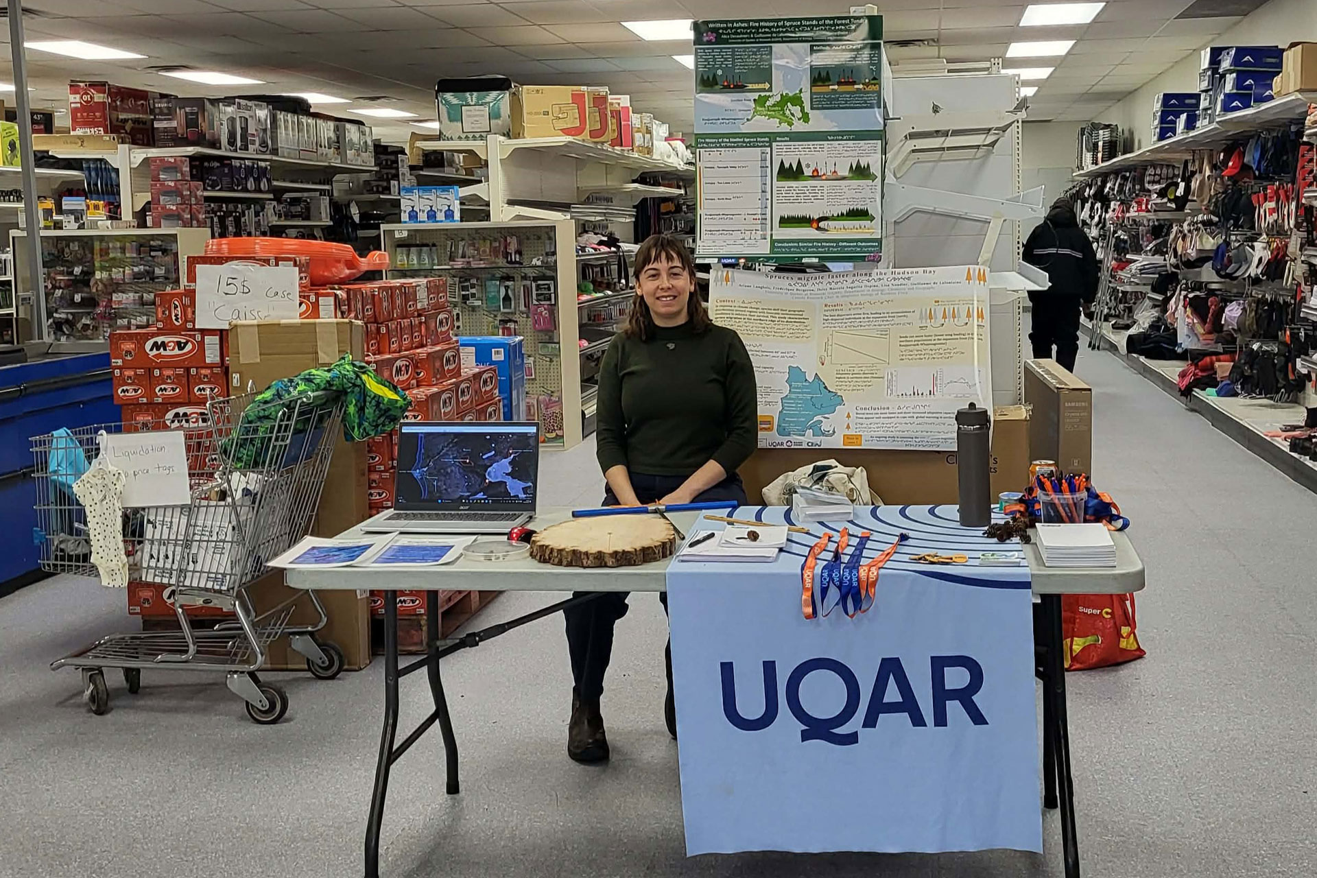 Alice Désaulniers a pris part tant à l’organisation du séjour qu’à la préparation du matériel de vulgarisation. « J’ai produit un rapport synthèse de mon mémoire de maîtrise pour les acteurs territoriaux concernés ainsi qu’une affiche de vulgarisation scientifique traduite en inuktitut et en cri. Ariane et moi avons aussi préparé des ateliers que nous avons eu la chance de présenter dans les écoles primaires et secondaires. Les ateliers portaient sur les différentes manières d’étudier les arbres en sciences. On y abordait les thématiques de la dendrochronologie, la paléoécologie, les stratégies de dispersion et la migration des espèces. »