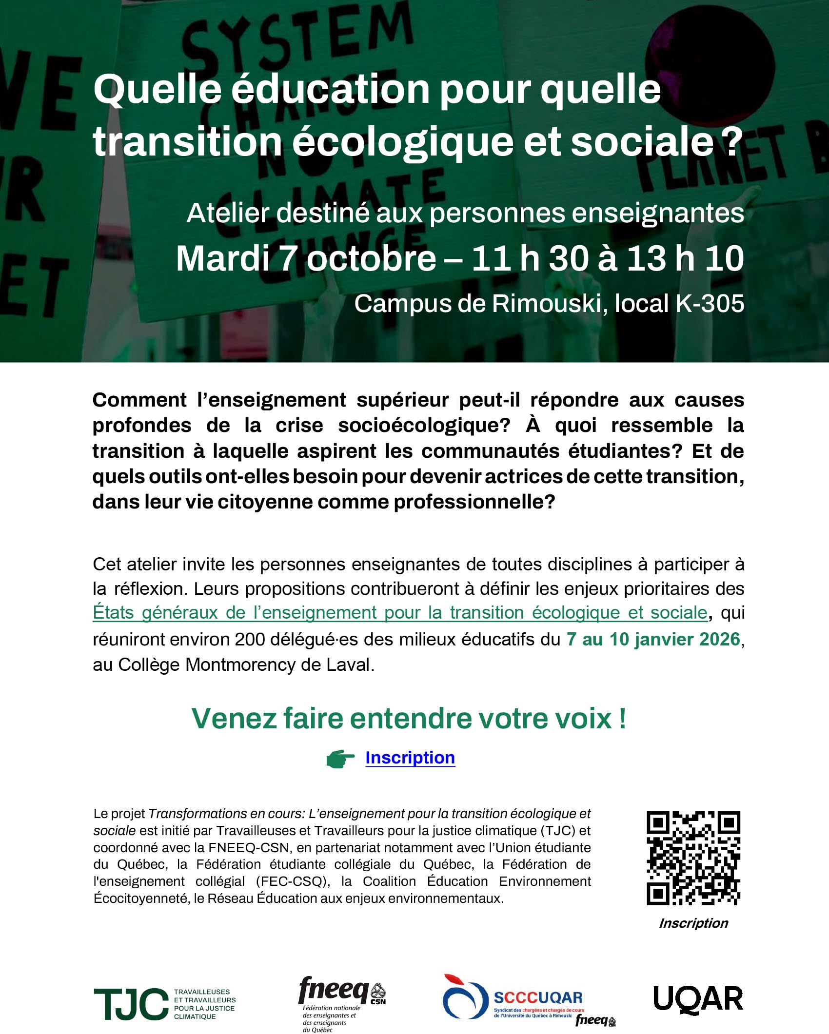 • Ateliter destinée aux personnes enseignantes «Quelle éducation pour quelle transition écologique et sociale?»
