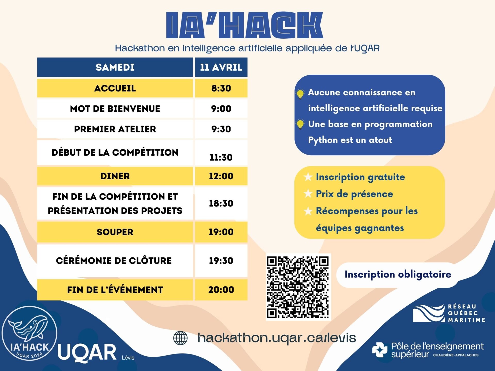 IA’Hack, le hackathon en intelligence artificielle appliquée de l’UQAR, arrive en force le samedi 11 avril 2026 au campus de Lévis.