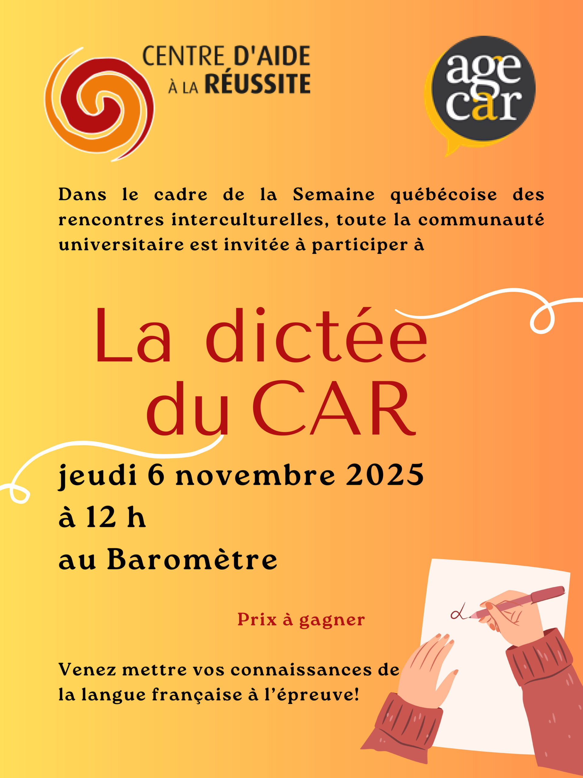 À l’occasion de la Semaine québécoise des rencontres interculturelles, toute la communauté universitaire du campus de Rimouski est invitée à participer à la dictée du CAR.