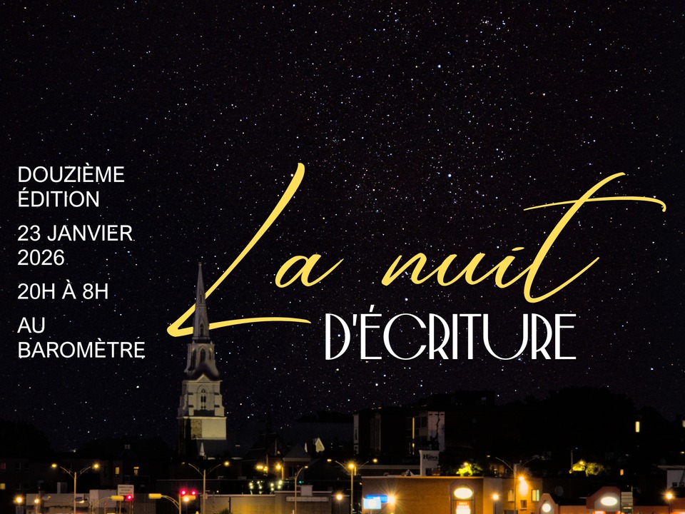 Le Regroupement des étudiantes et étudiants en lettres (RÉEL) de l’UQAR annonce la tenue de la 12ᵉ édition de La nuit d’écriture, événement littéraire phare qui se déroulera du vendredi 23 janvier au samedi 24 janvier, au Baromètre du campus de Rimouski.