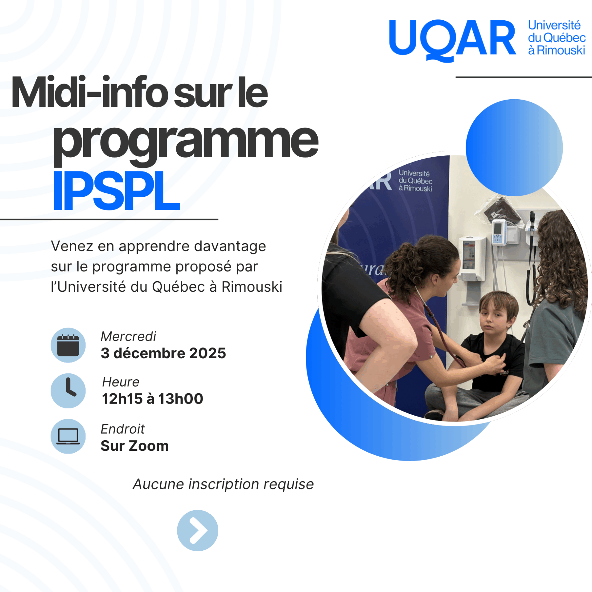Venez en apprendre davantage sur le programme proposé à l’Université du Québec à Rimouski. Aucune inscription requise.