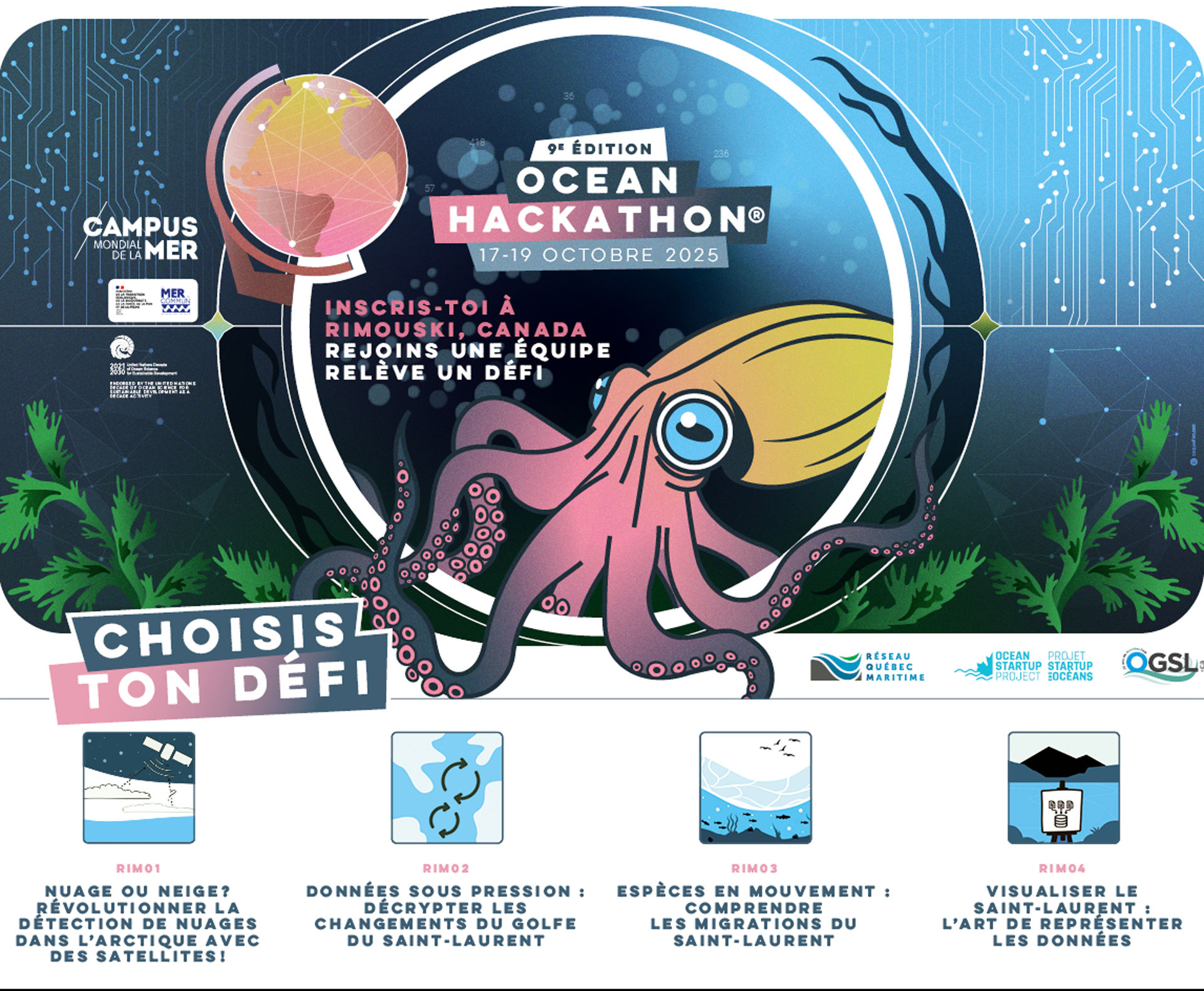 La 9e édition de l’Ocean Hackathon sera présentée au campus de Rimouski du 17 au 19 octobre. Pendant 48 heures, des étudiantes et étudiants vont transformer des données océaniques en solutions concrètes et innovantes pour le secteur maritime.