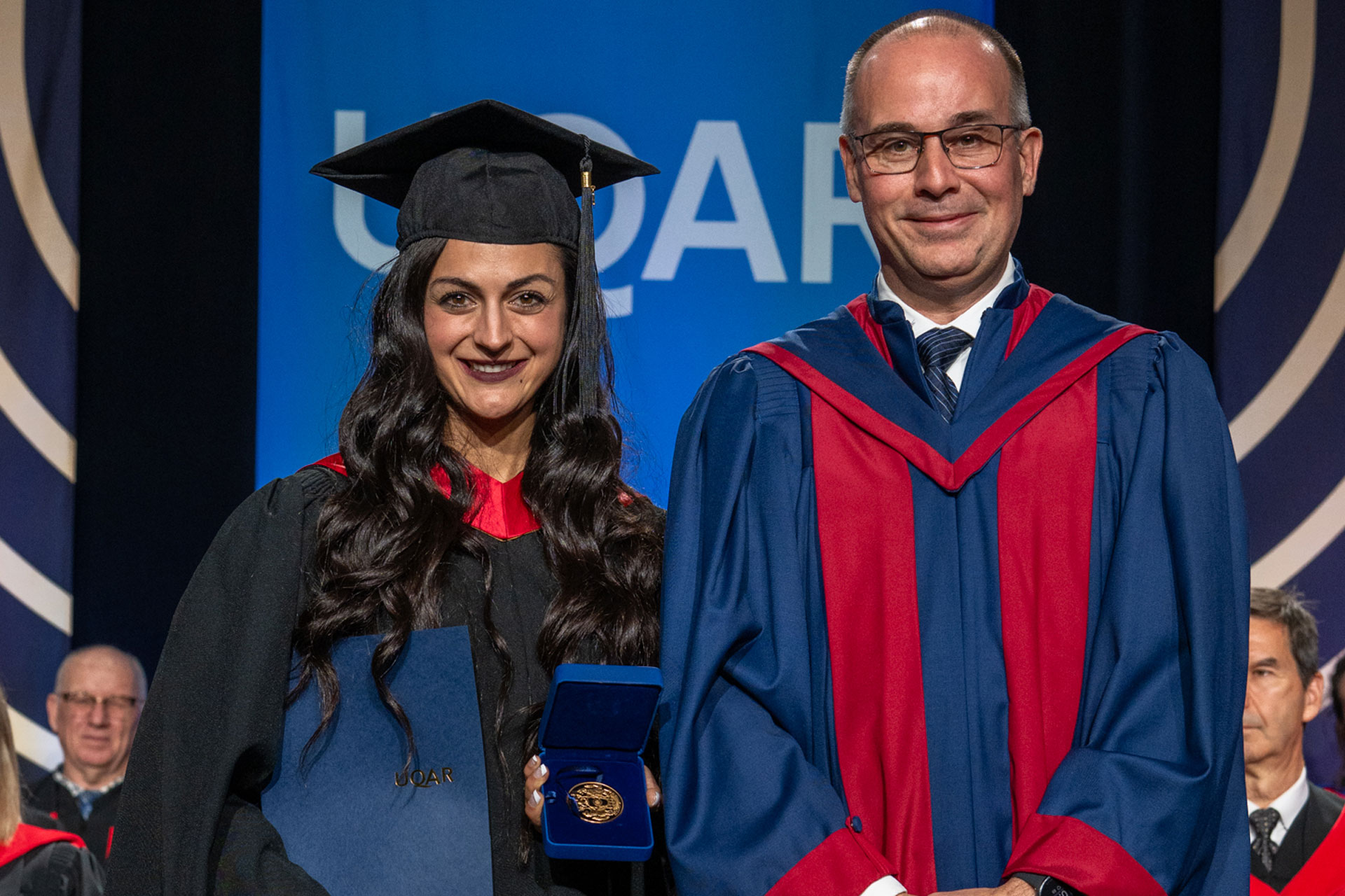 La médaille d’or du programme de la Médaille académique du Gouverneur général du Canada a, quant à elle, été décernée à Joanie Turmel, diplômée à la maîtrise en travail social. Cette dernière s’est distinguée par l’excellence de son dossier étudiant et par son engagement exceptionnel auprès de sa communauté.