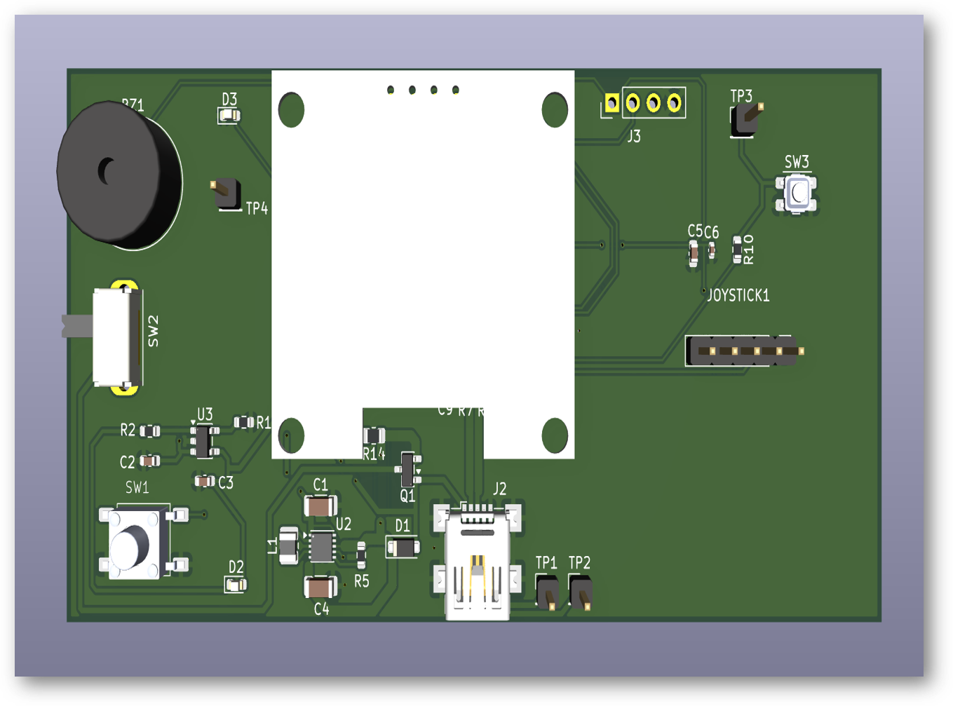 La console est entièrement conçue autour du microcontrôleur RP2040 (Raspberry Pi Pico) et utilise principalement des composants CMS. Elle intègre un écran OLED, deux potentiomètres (joystick) pour les commandes, un buzzer pour les sons, et une alimentation USB + batterie LiPo 3,7 V.