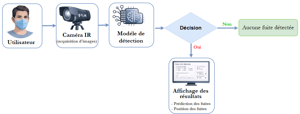 Ce travail met en évidence le potentiel d’une approche combinant imagerie infrarouge et apprentissage profond pour une détection précise et localisée des fuites. La richesse et l’unicité de la base de données développée constituent un atout majeur pour ce domaine de recherche.