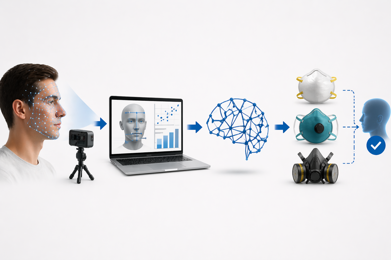 Depuis la pandémie de COVID-19, l’utilisation des appareils de protection respiratoire (APR), notamment les masques N95, a fortement augmenté dans les milieux professionnels et au sein de la population. Toutefois, l’efficacité de ces dispositifs ne dépend pas uniquement de leur capacité de filtration, mais aussi de leur ajustement au visage. Les travaux anthropométriques du NIOSH montrent que les morphologies faciales varient considérablement d’un individu à l’autre, ce qui complique le choix d’un APR adapté. Les méthodes actuelles, comme les essais d’ajustement, sont souvent longues, coûteuses et nécessitent des ressources spécialisées.